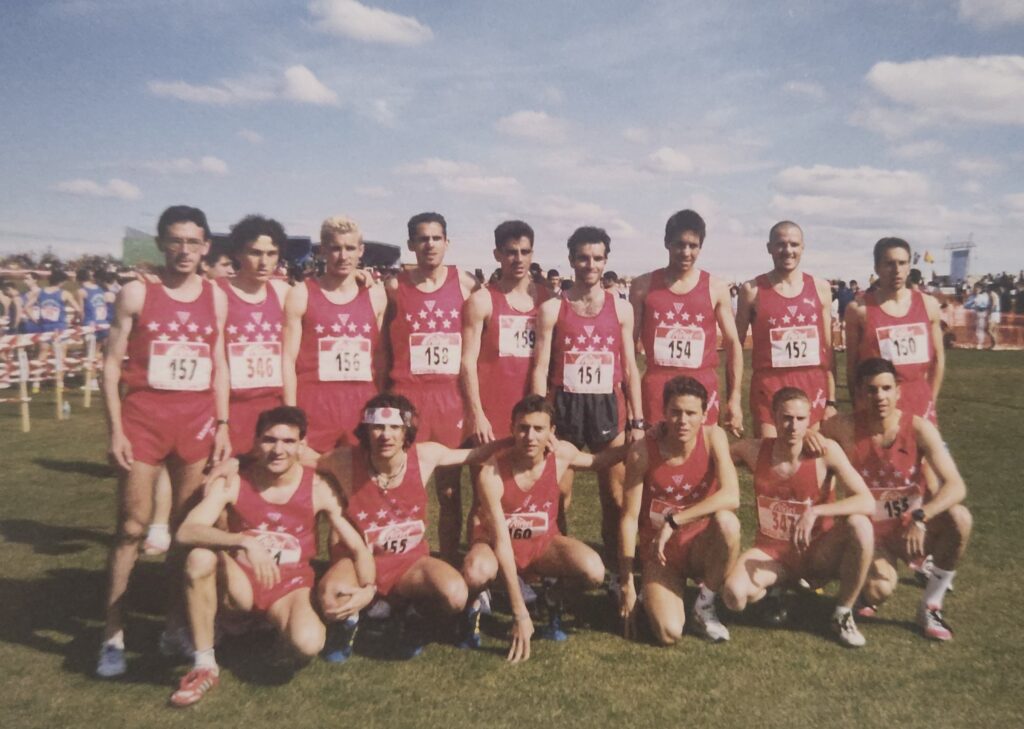 La selección de Madrid campeona de España de Cross en 1999, De izq a dcha. Arriba: Jesús de Grado, Jesús España, David Chuvieco, Manolo García, Óscar Díaz, Fabián Roncero, Martín Berlanas, Chema Martínez y Alberto García.