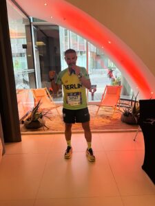 En Berlín, nuestro compañero getafense, se mantuvo a un ritmo constantes de 4:45 hasta esos últimos 10 kms en los que acumulaba demasiada tensión en los isquiotibiales, y no le quedó más remedio que olvidarse de parciales y llegar a meta como pudo, parando en varios momento a estirar y pudiendo así, cumplir su sueño de estar a un sólo Major para recibir la medalla especial que se entrega a todos los finishers del mundo que acumulan estas seis pruebas de 42,195 metros.